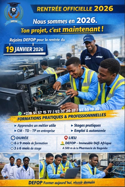 DEFOP est accréditée par le gouvernement togolais par les arrêtés N°2020/025/METFIP/CAB/SG/SE-CPO, sis à Baguida